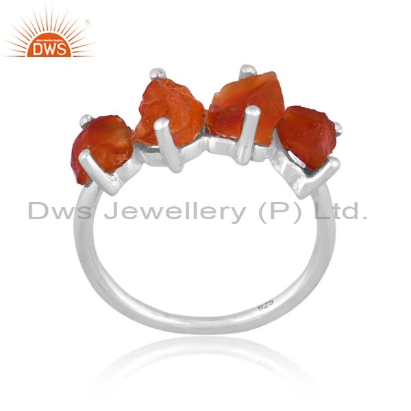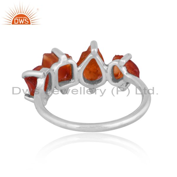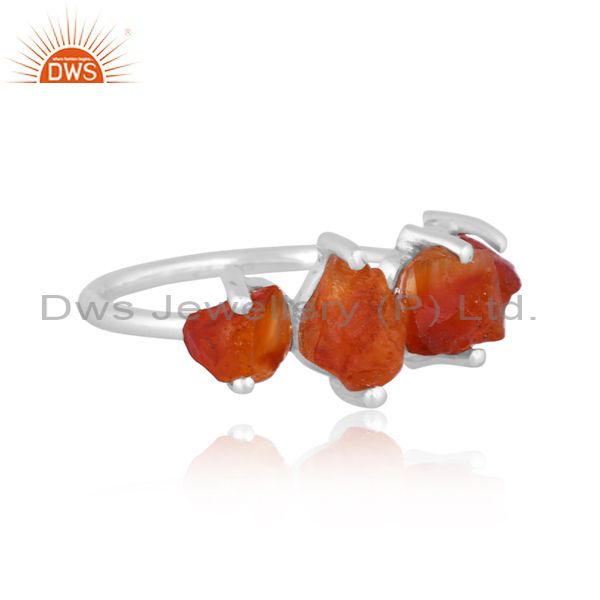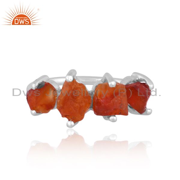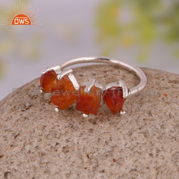 Rough Cut Carnelian Set Fine 925 Silver Multi Stone Ring