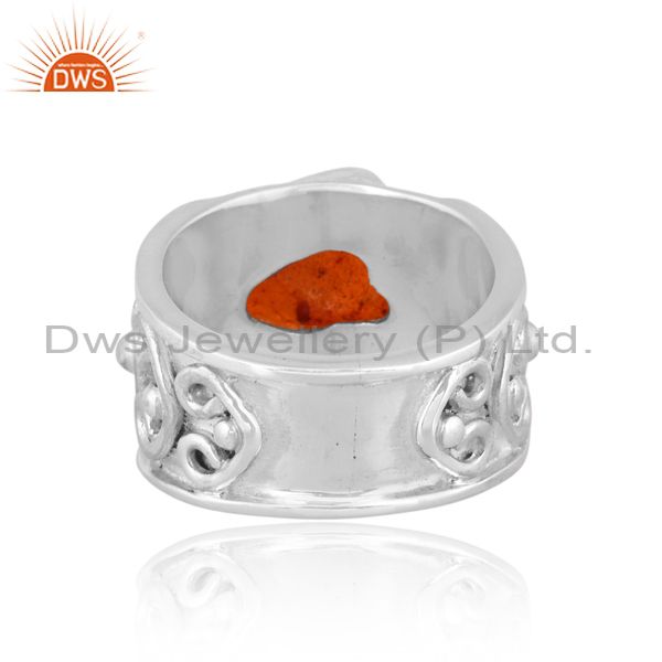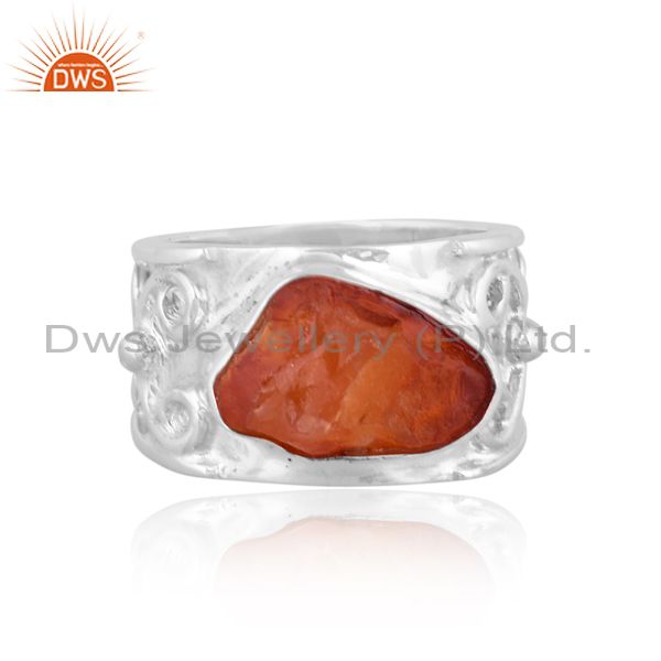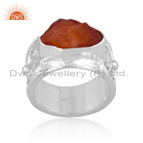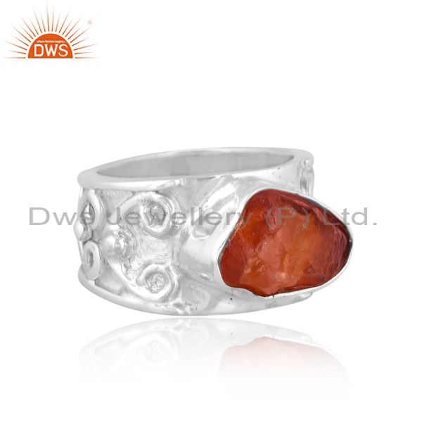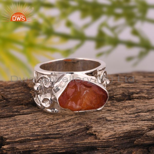 Rough Cut Carnelian Set Fine Sterling Silver Band Type Ring