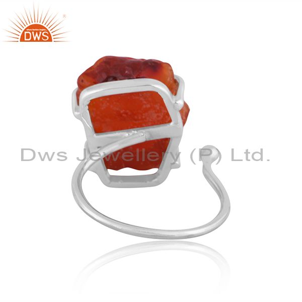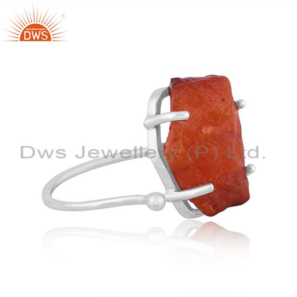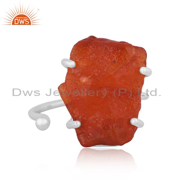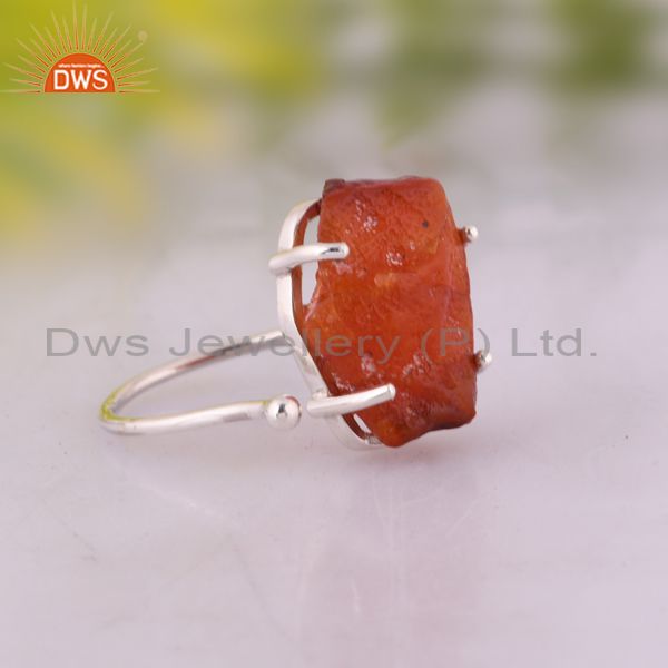 Rough Cut Carnelian Set Fine Sterling Silver Designer Ring