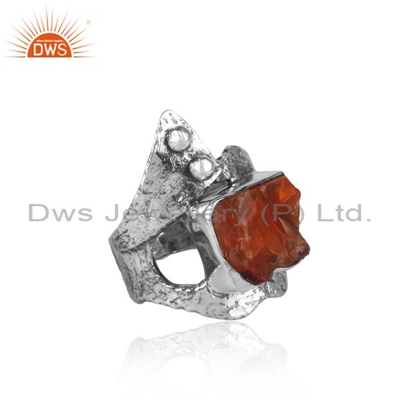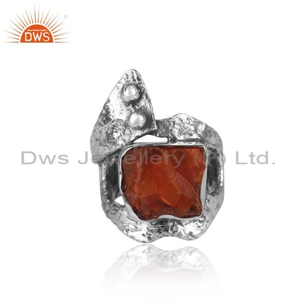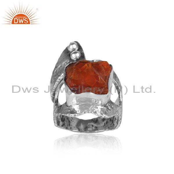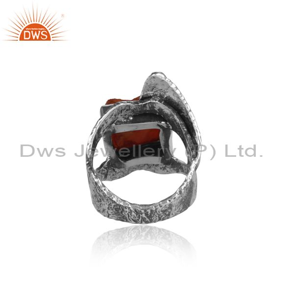 Rough Cut Carnelian Set Oxidized 925 Silver Abstract Ring