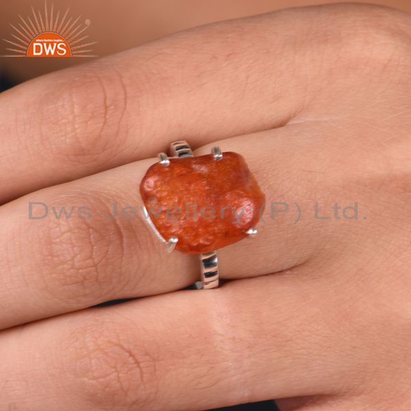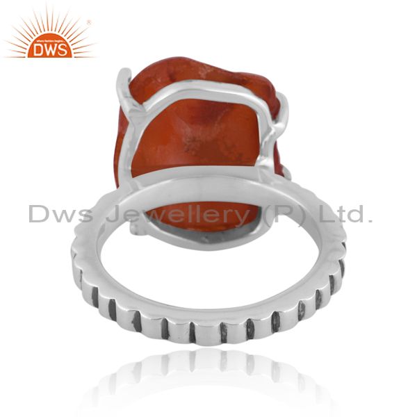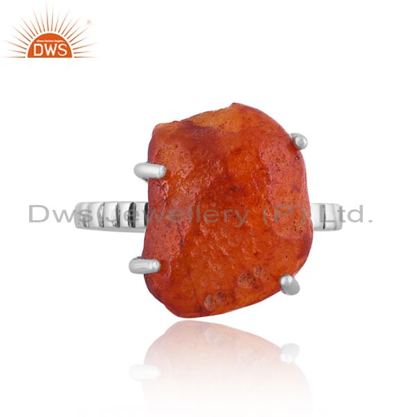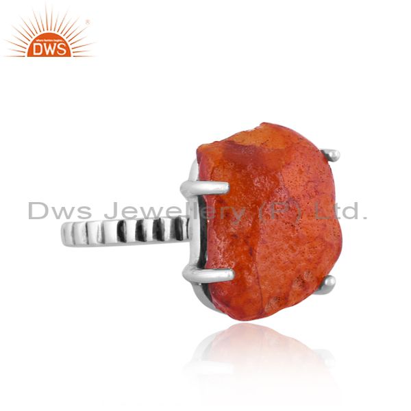 Rough Cut Carnelian Set Oxidized 925 Silver Designer Ring