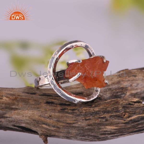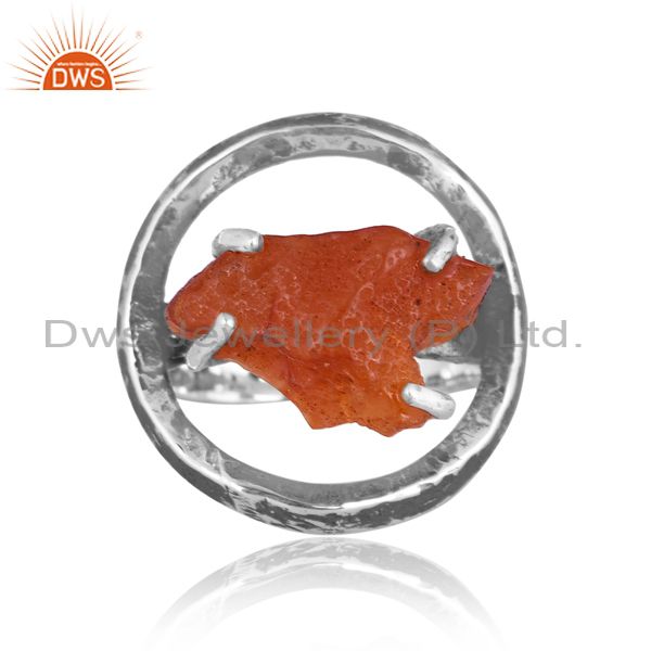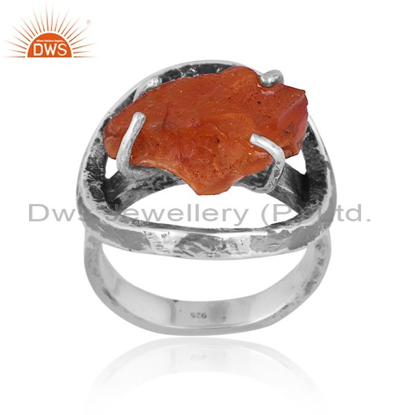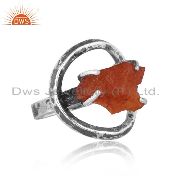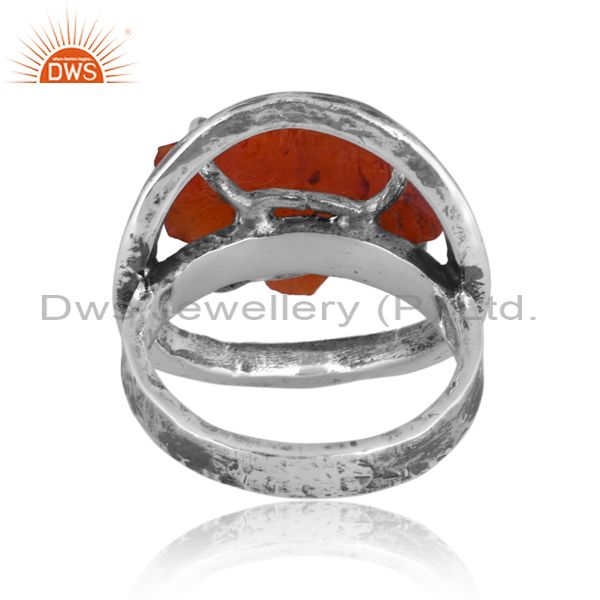Rough Cut Carnelian Set Oxidized 925 Silver Double Band Ring