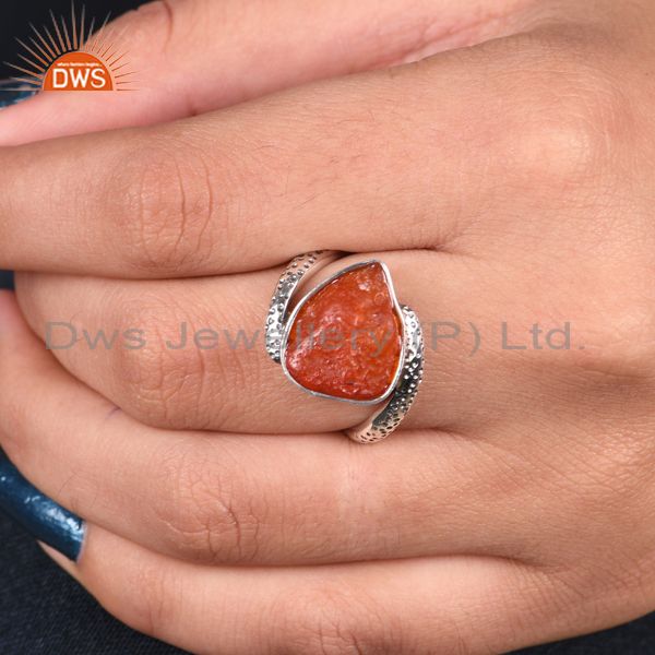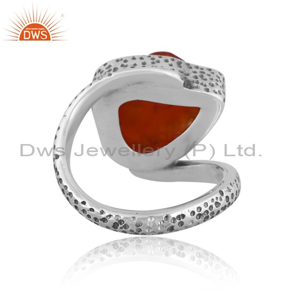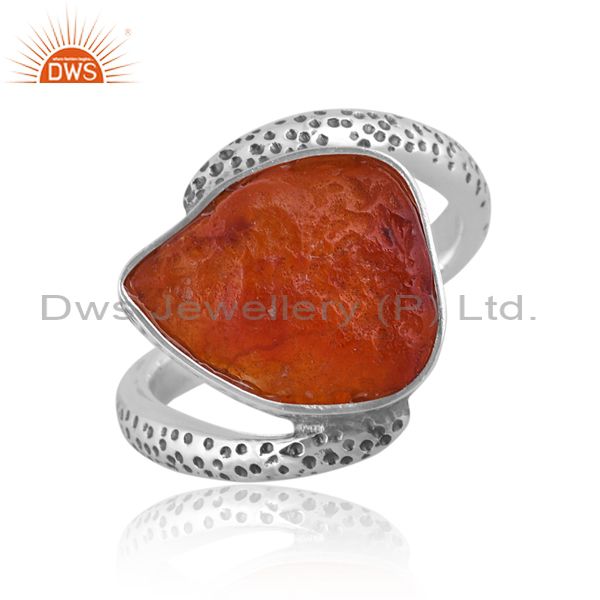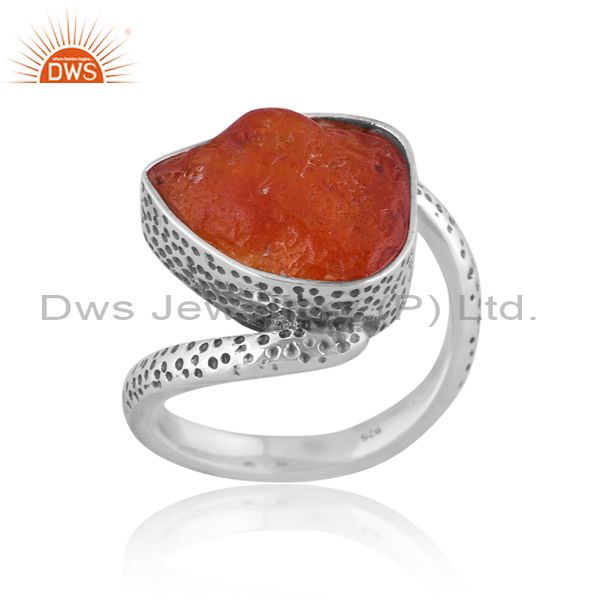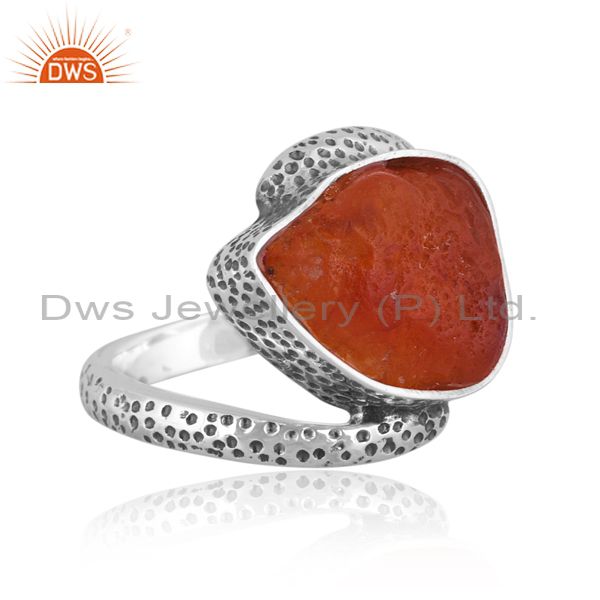 Rough Cut Carnelian Set Oxidized Silver Twist Design Ring