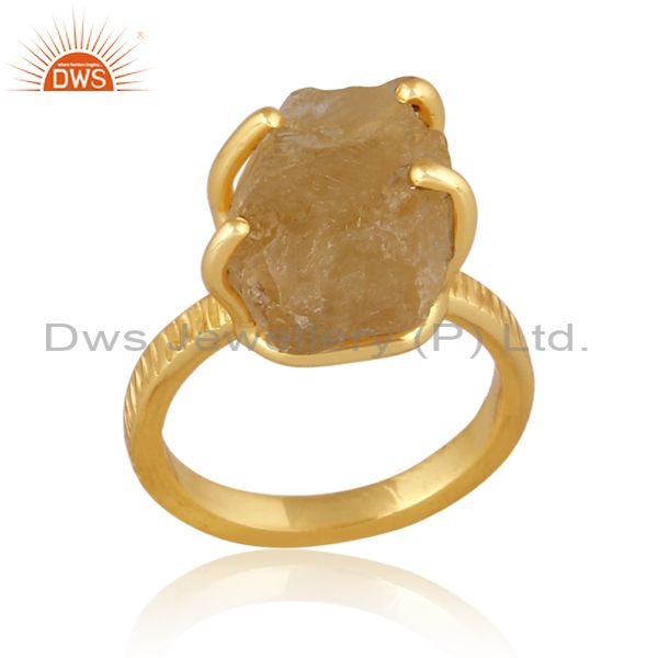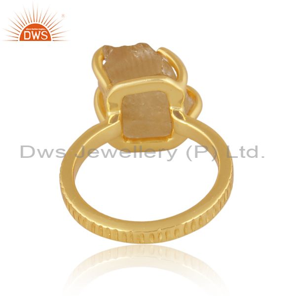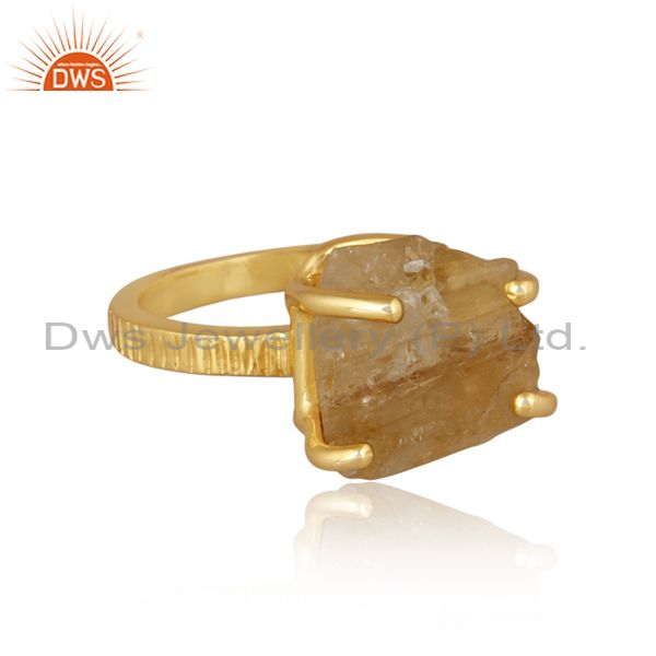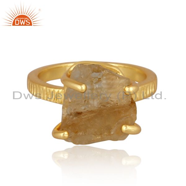 Rough Cut Citrine Set Gold On Silver Classic Designer Ring