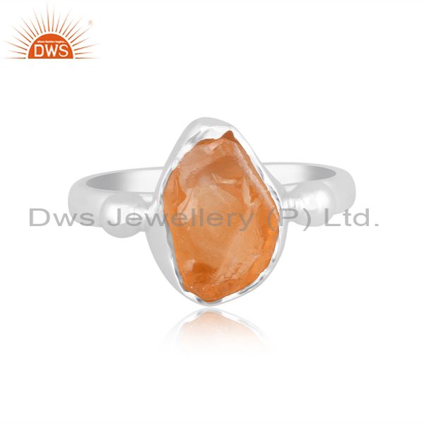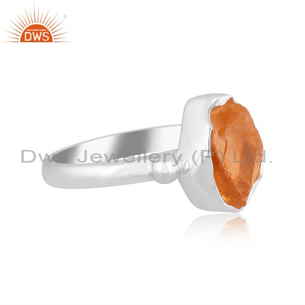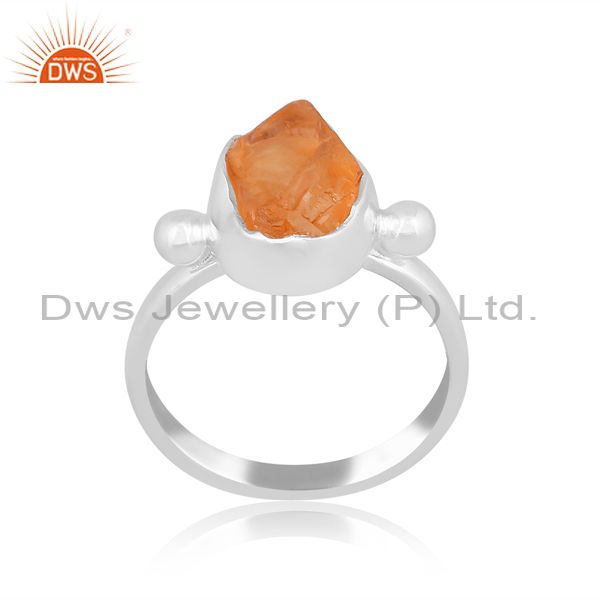Rough Cut Citrine Set Handmade Fine 925 Silver Designer Ring
