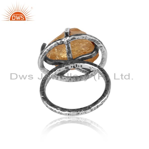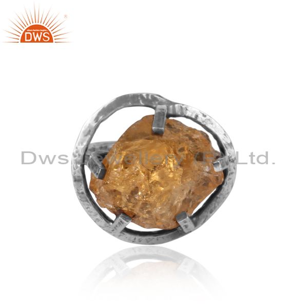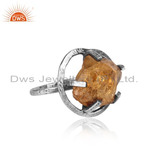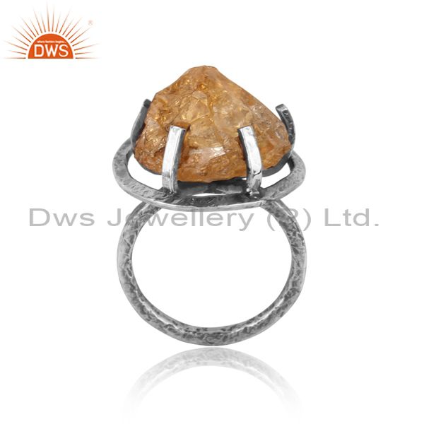 Rough Cut Citrine Set Oxidized Silver Handmade Designer Ring