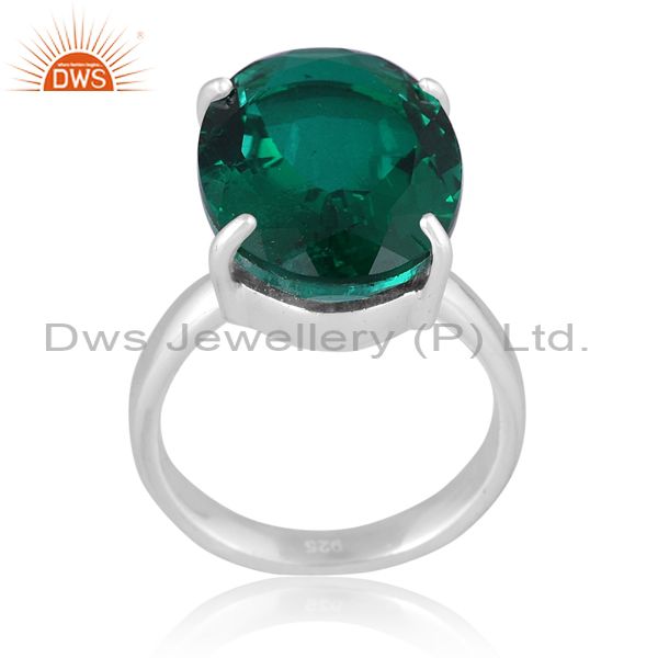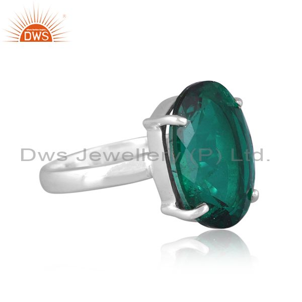 Rough Cut Doublet Zambian Emerald Quartz Fine Silver Ring