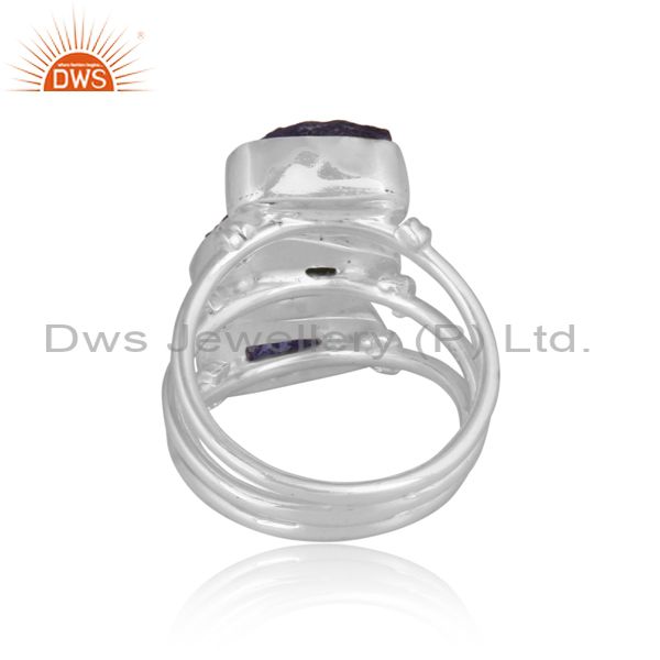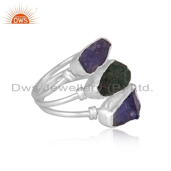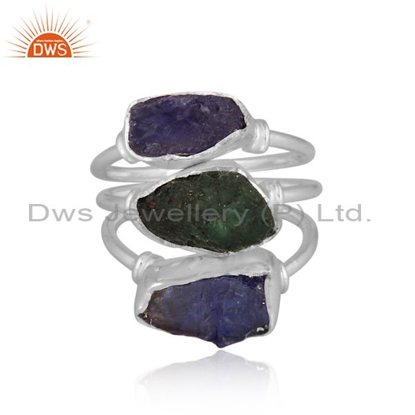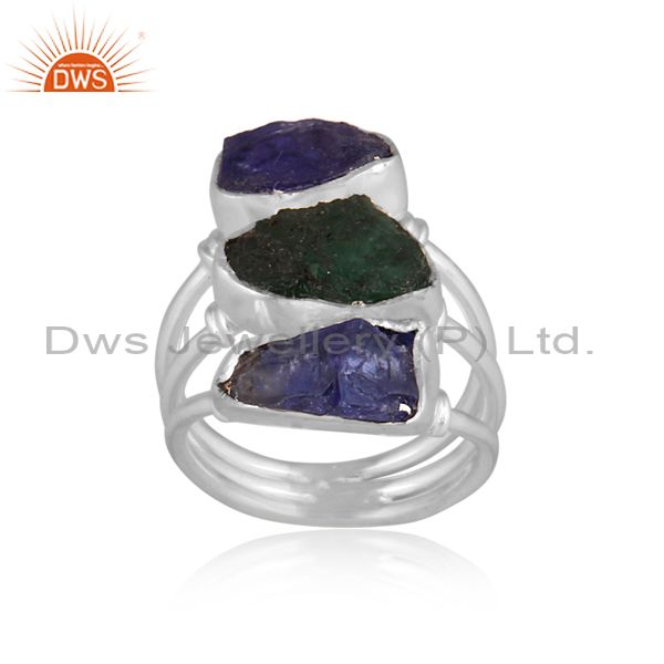 Rough Cut Emerald And Tanzanite Fine Silver Multi Stone Ring