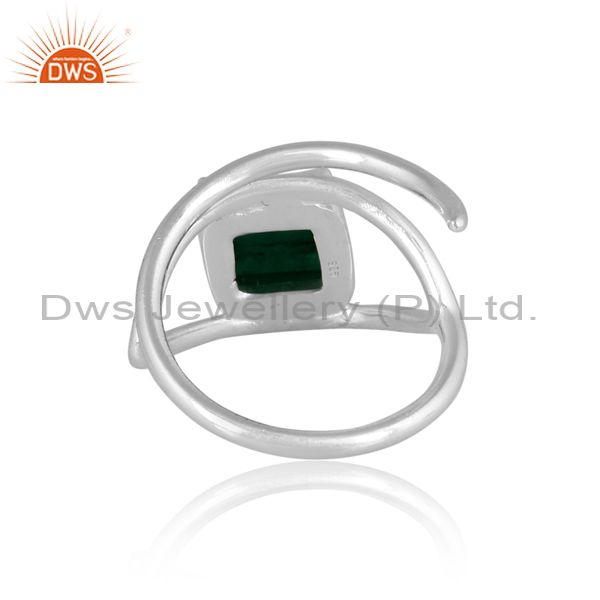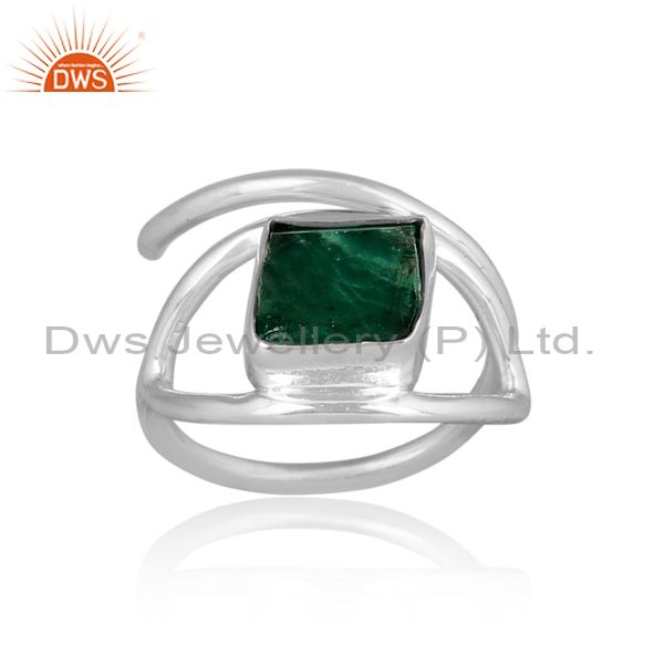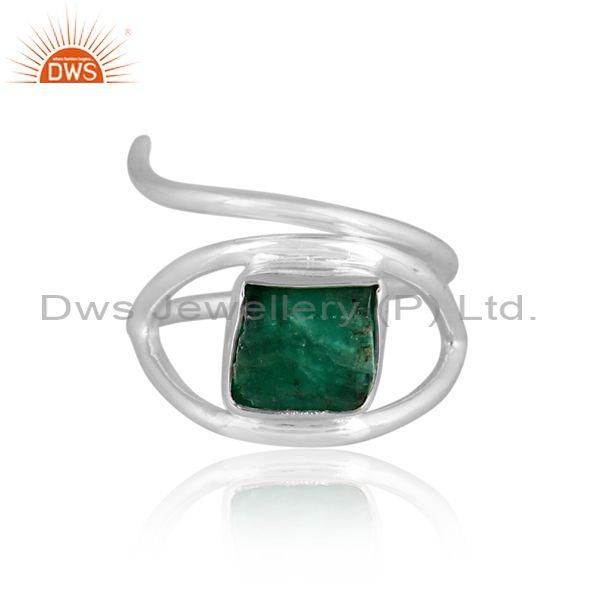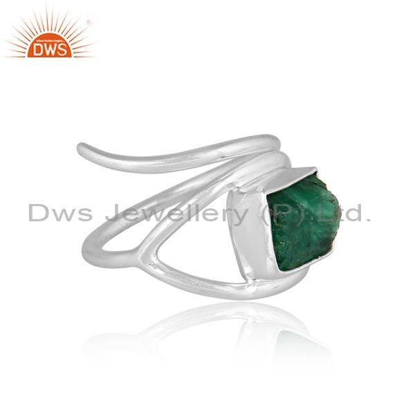 Rough Cut Emerald Set Fine 925 Silver Designer Abstract Ring