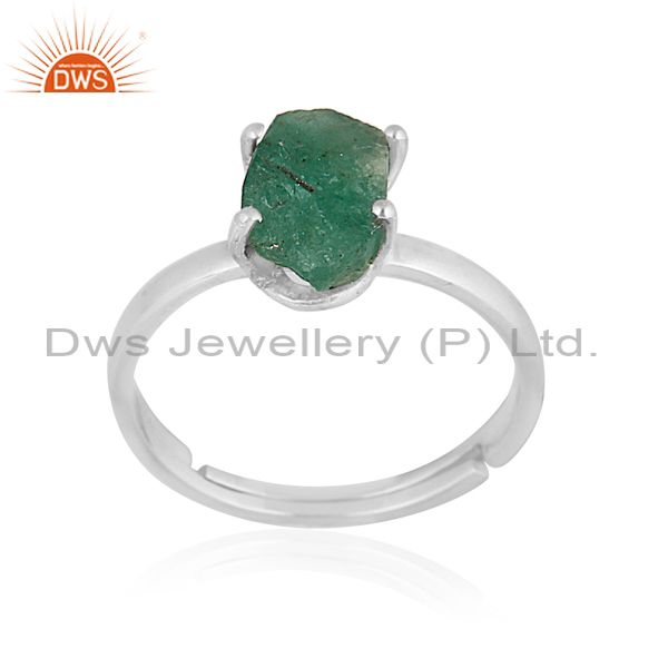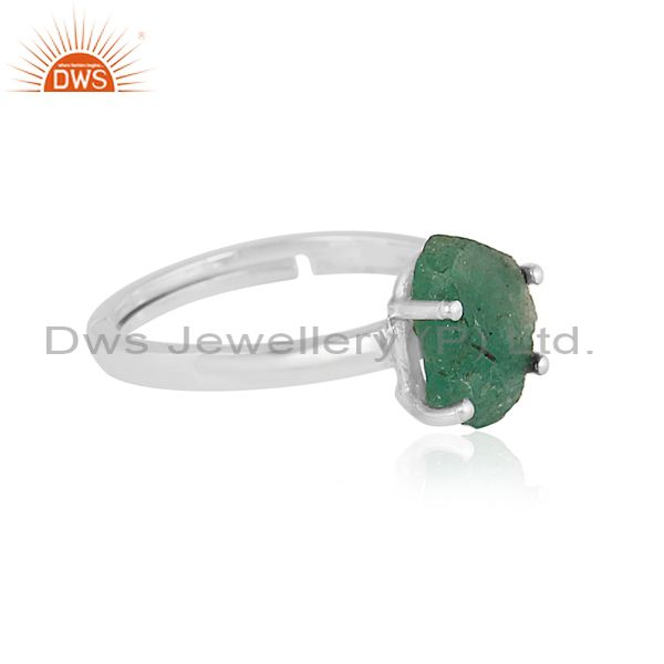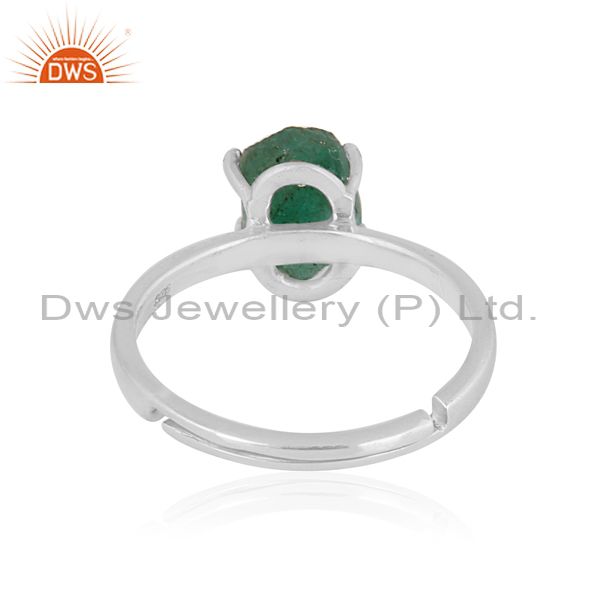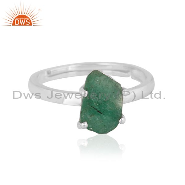 Rough Cut Emerald Set Fine 925 Silver Handmade Designer Ring