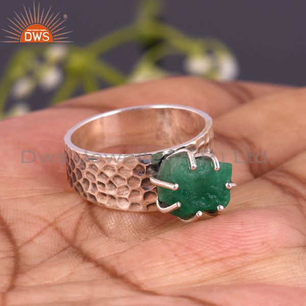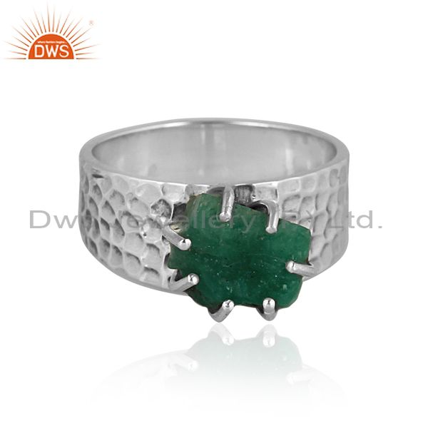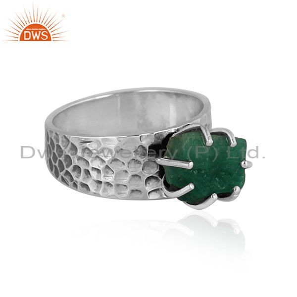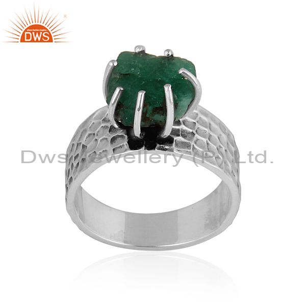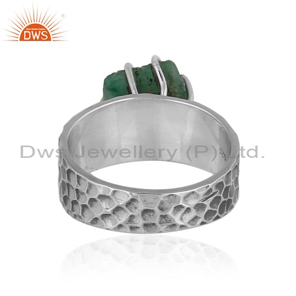 Rough Cut Emerald Set Oxidized 925 Silver Handmade Band Ring
