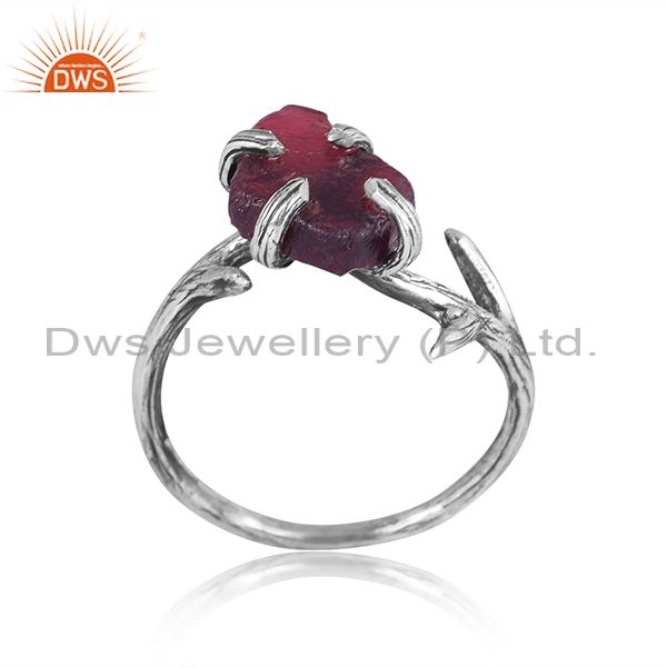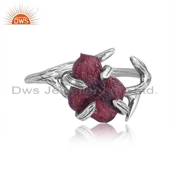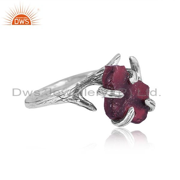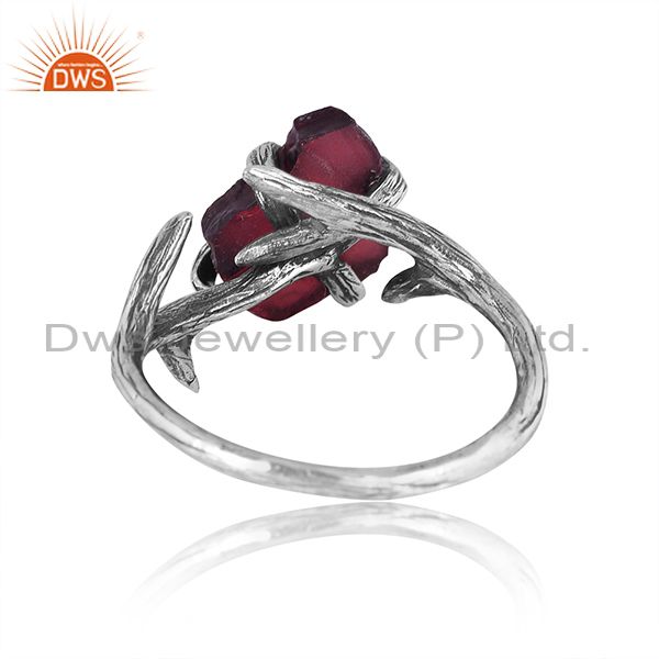 Rough Cut Garnet Set Oxidized 925 Sterling Silver Fancy Ring