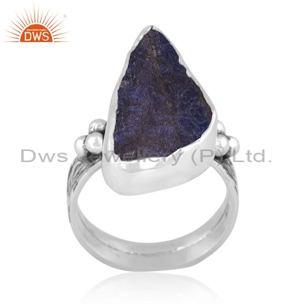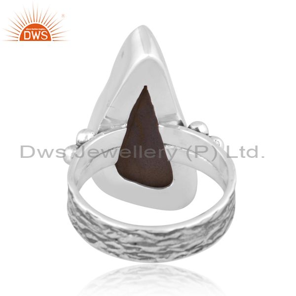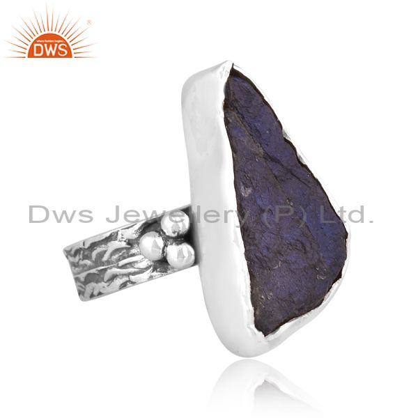Rough Cut Labradorite Set Oxide Sterling Silver Fancy Ring