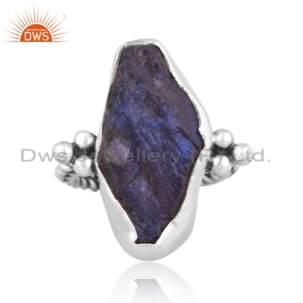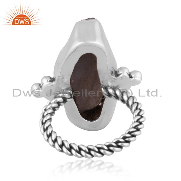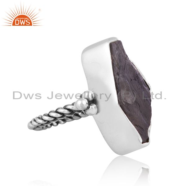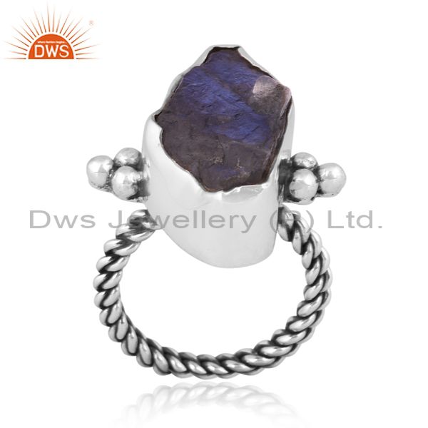 Rough Cut Labradorite Set Oxide Sterling Silver Twist Ring