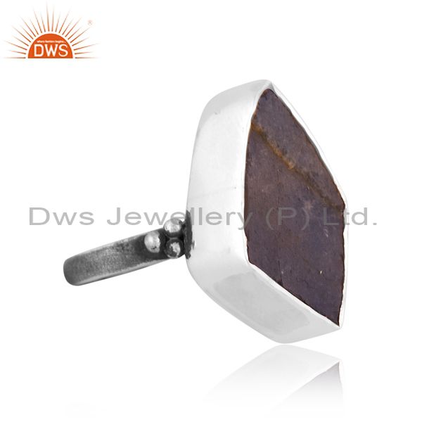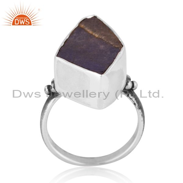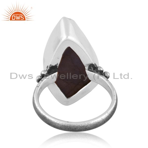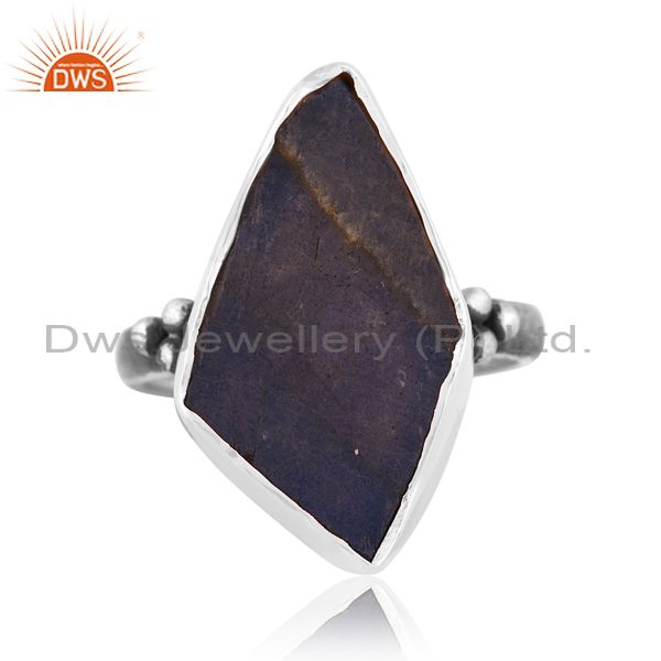Rough Cut Labradorite Set Oxidized 925 Sterling Silver Ring