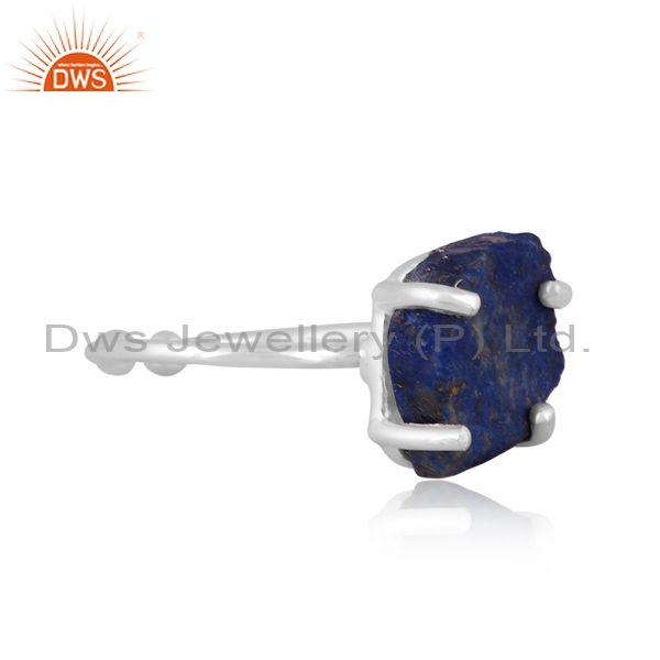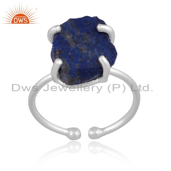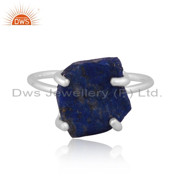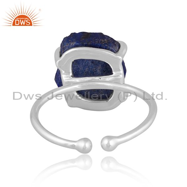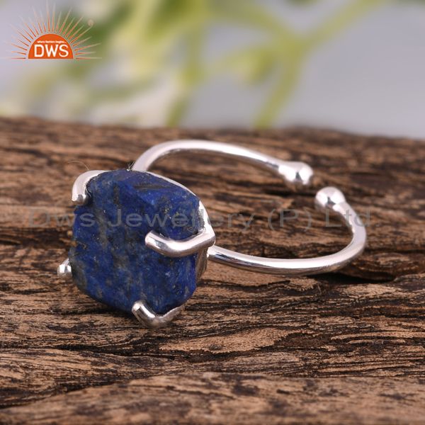 Rough Cut Lapis Set Fine 925 Silver Classic Statement Ring