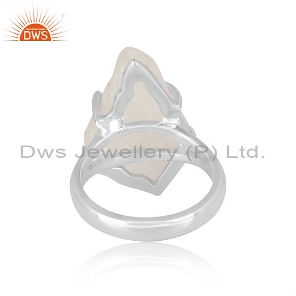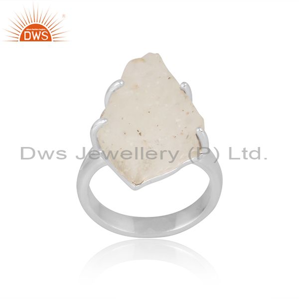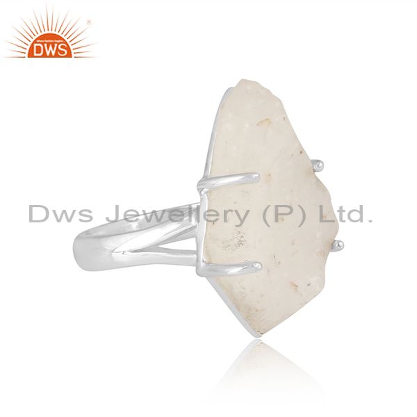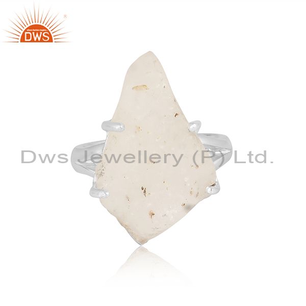 Rough Cut Libyan Desert Glass Set Fine Silver Designer Ring