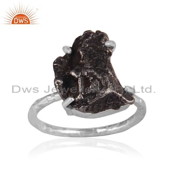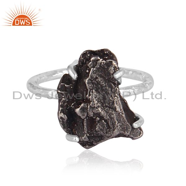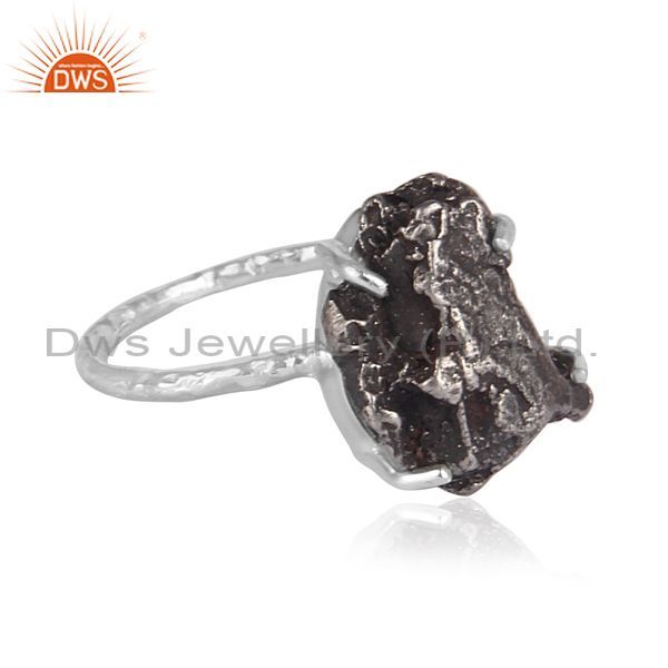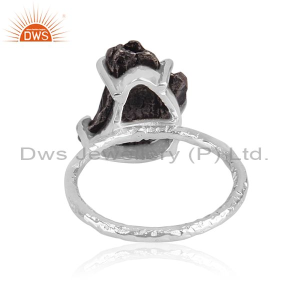 Rough Cut Meteorite Set Fine 925 Silver Handhammered Ring