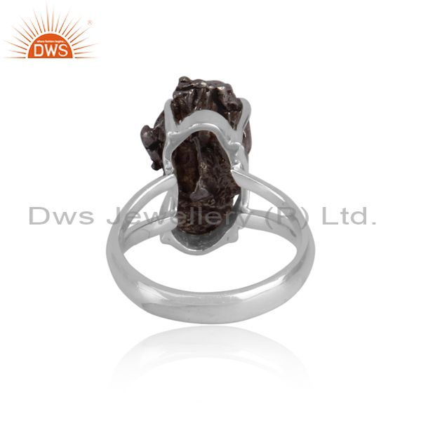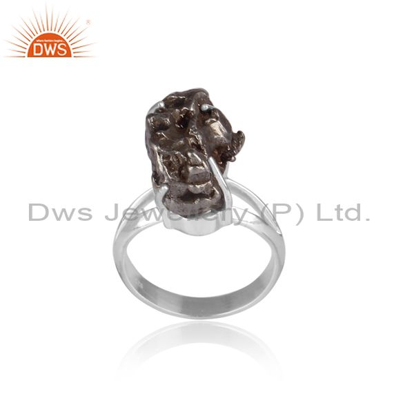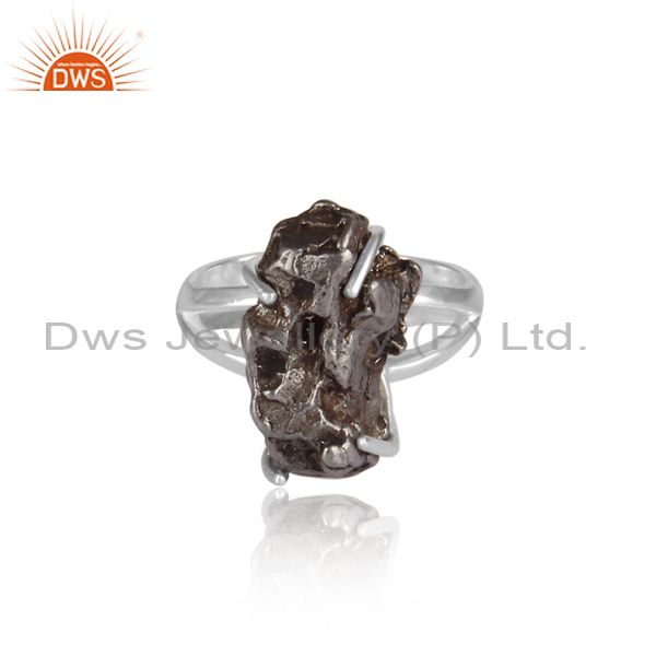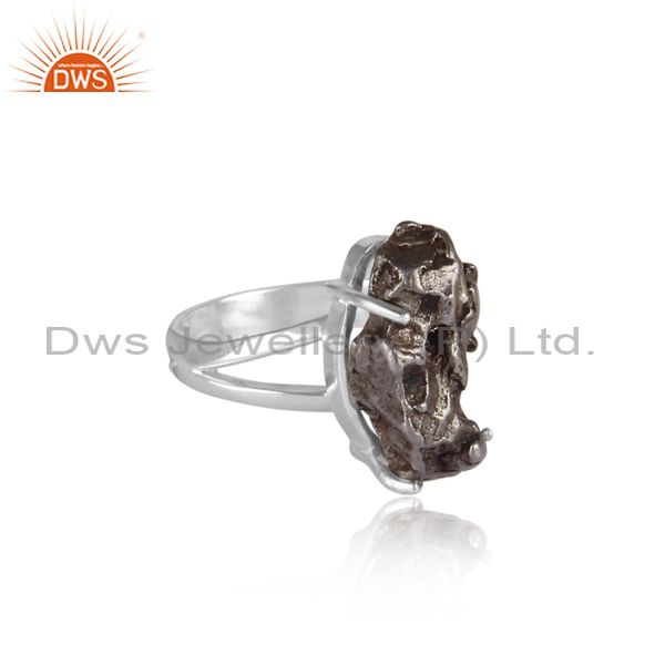 Rough Cut Meteorite Set Fine Sterling Silver Handmade Ring