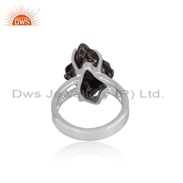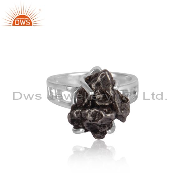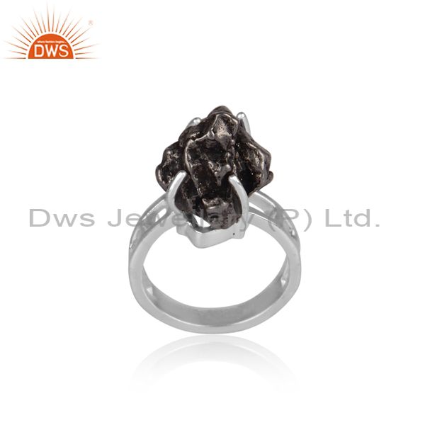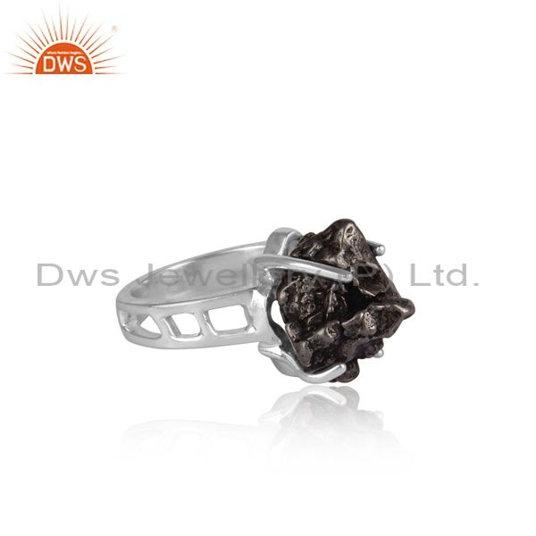 Rough Cut Meteorite Set Fine Sterling Silver Statement Ring