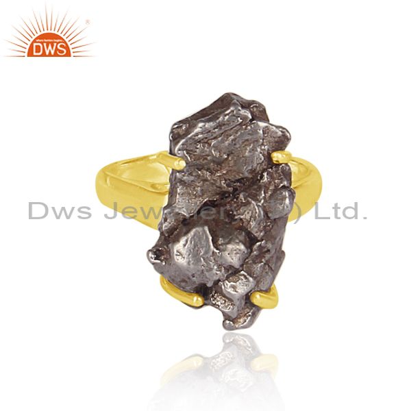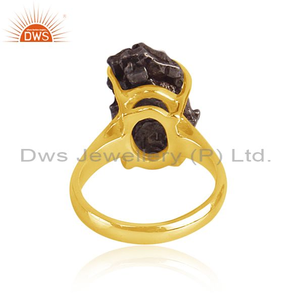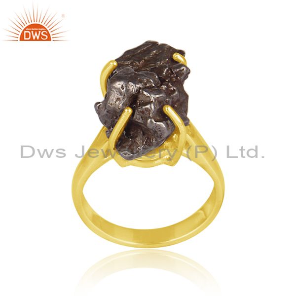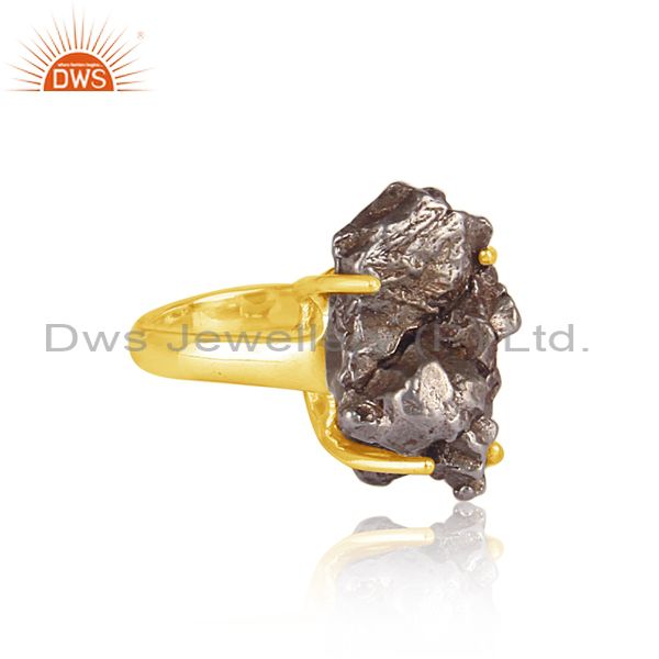 Rough Cut Meteorite Set Gold On 925 Silver Statement Ring