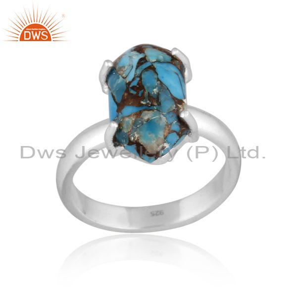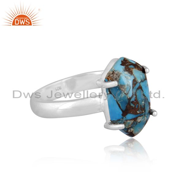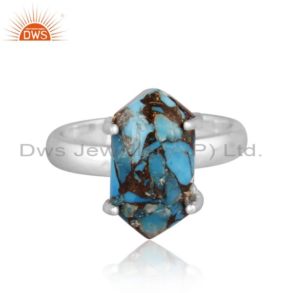 Rough Cut Mojave Copper Turquoise Set Fine 925 Silver Ring