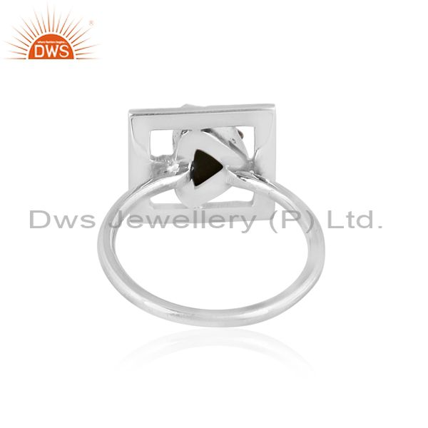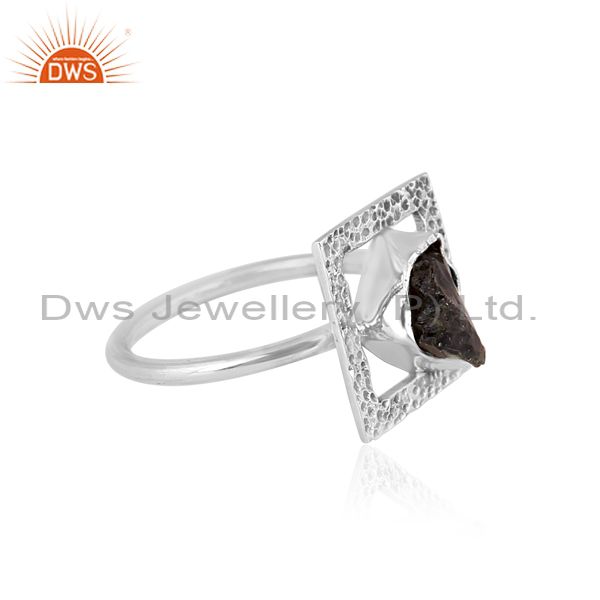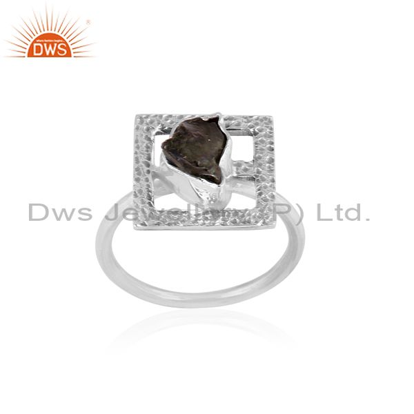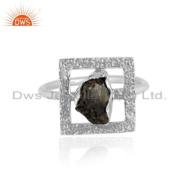 Rough Cut Moldavite Oxidized Silver Statement Square Ring