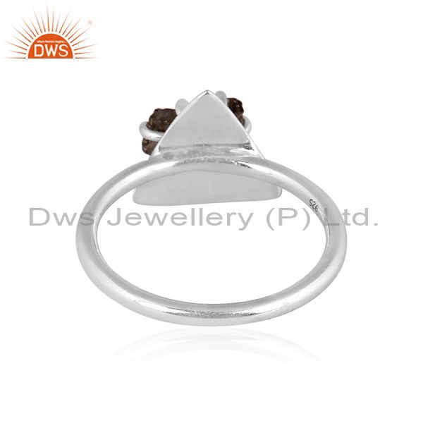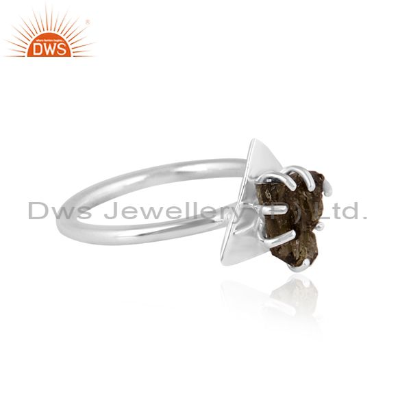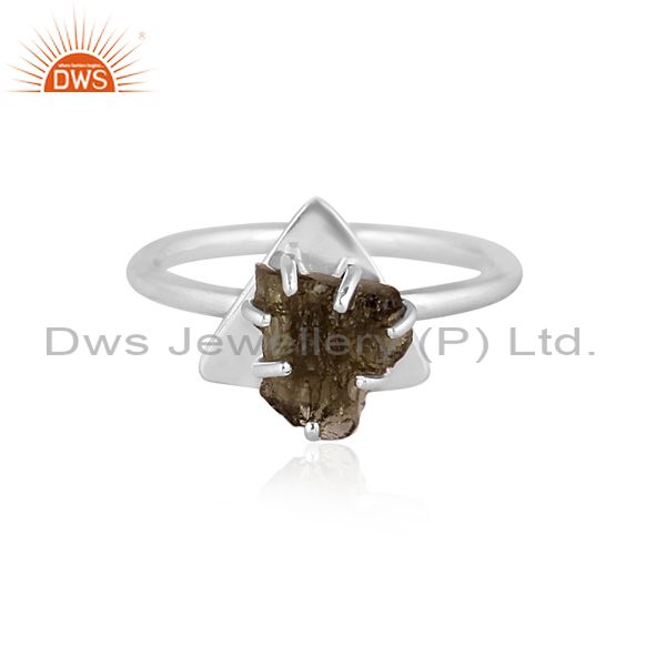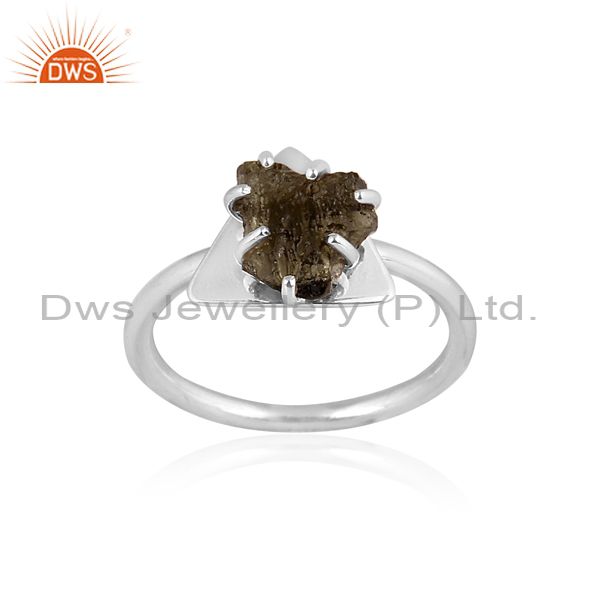 Rough Cut Moldavite Set Fine Sterling Silver Statement Ring