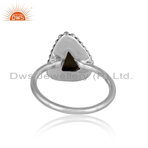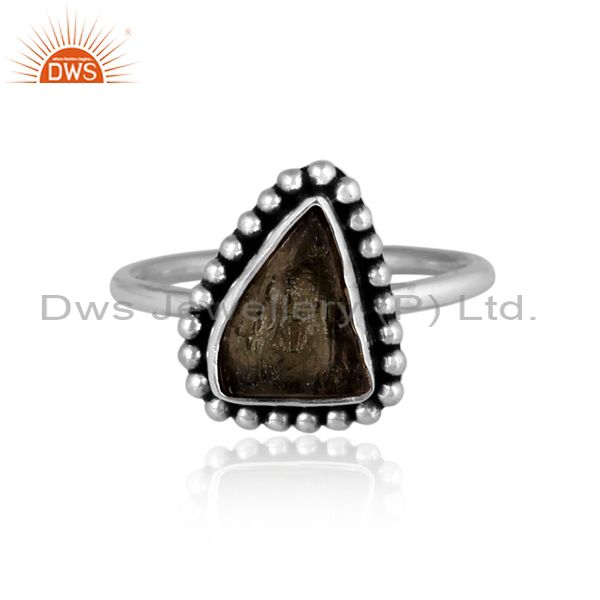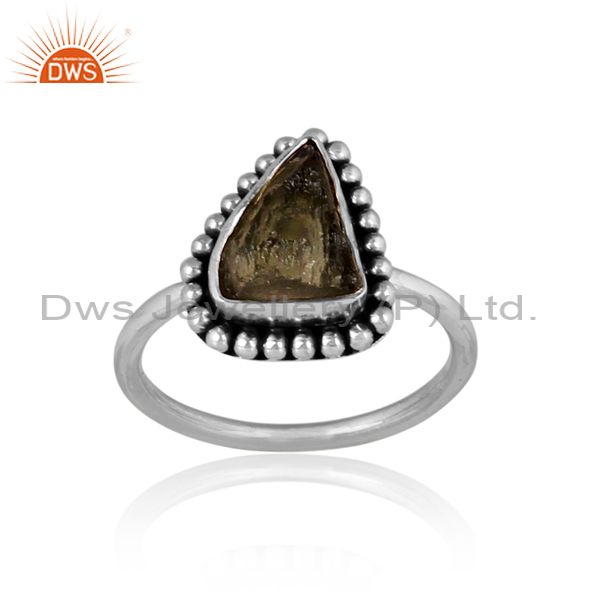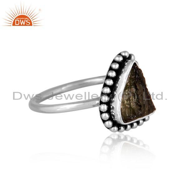 Rough Cut Moldavite Set Triangle Charm Oxidized Silver Ring