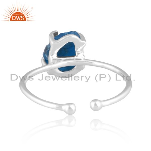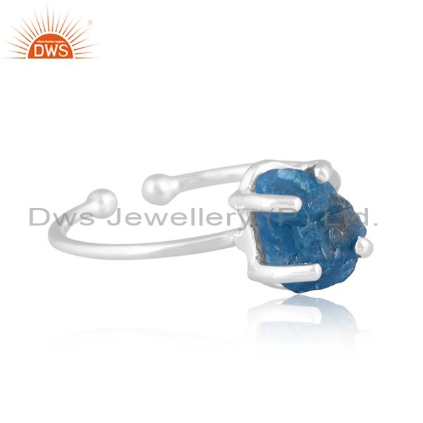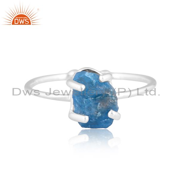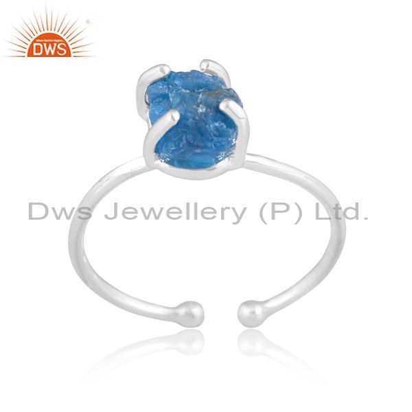 Rough Cut Neon Apatite Set Fine 925 Silver Statement Ring