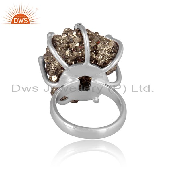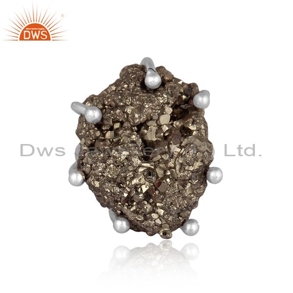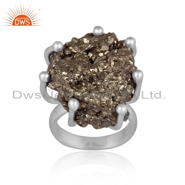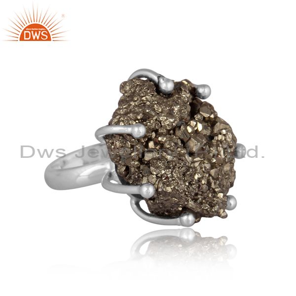 Rough Cut Pyrite Set Fine Silver Crown Style Designer Ring