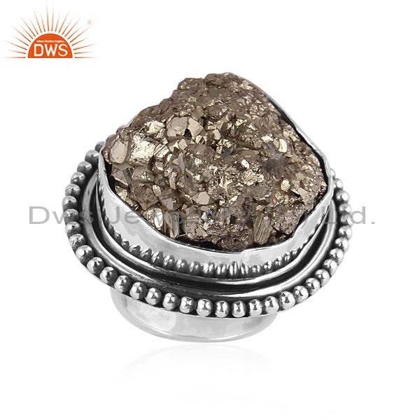 Rough Cut Pyrite Set Oxidized Silver Handmade Ethnic Ring