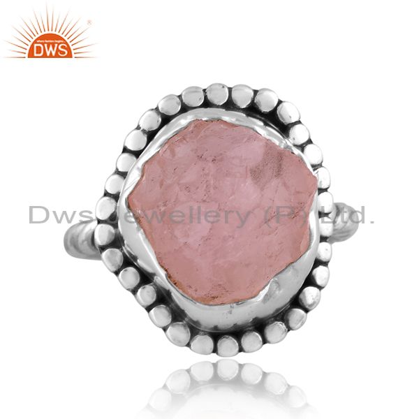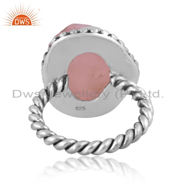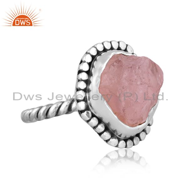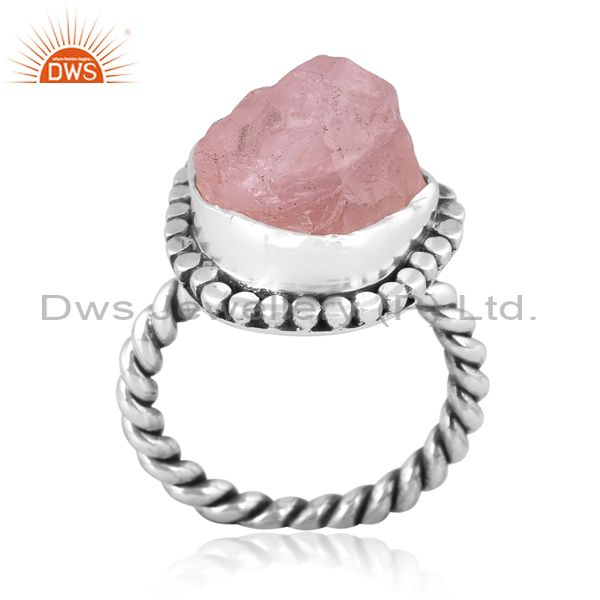 Rough Cut Rose Quartz Set Oxide Sterling Silver Twist Ring