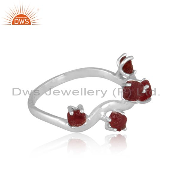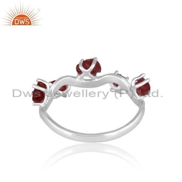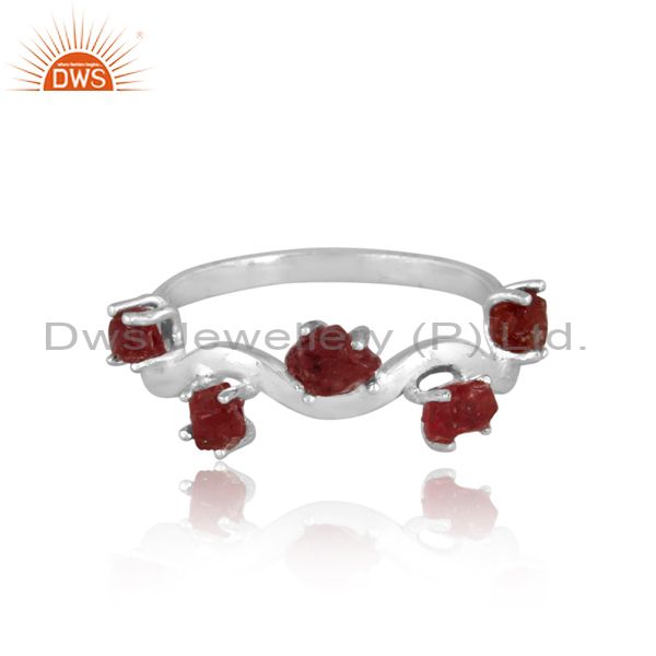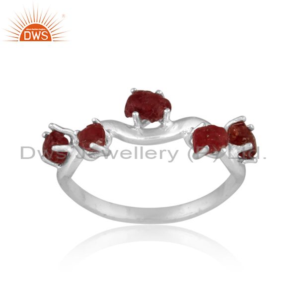 Rough Cut Spinel Ruby Set Fine Sterling Silver Abstract Ring