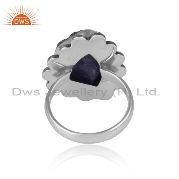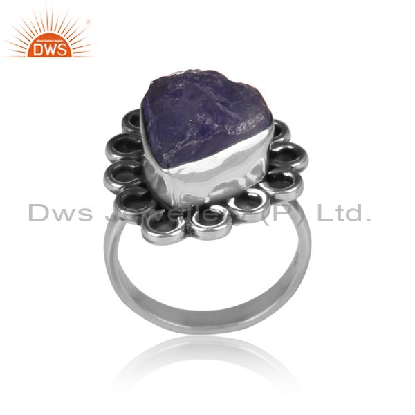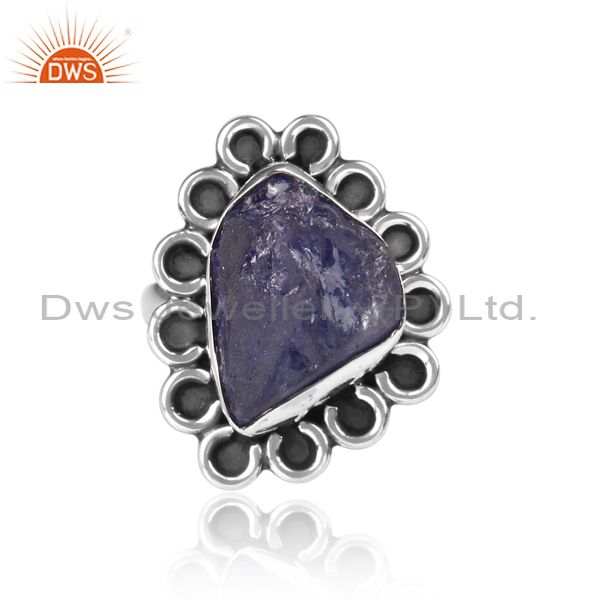Rough Cut Tanzanite Set Oxidized 925 Silver Designer Ring