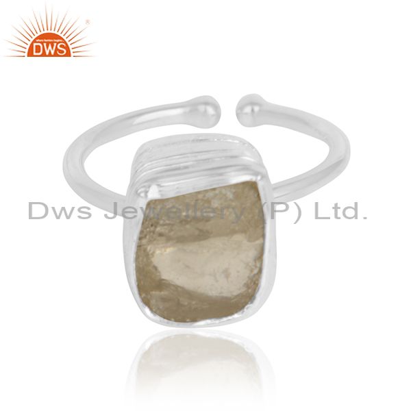 Rough Lemon Topaz Gemstone Designer Fine Silver Girls Rings