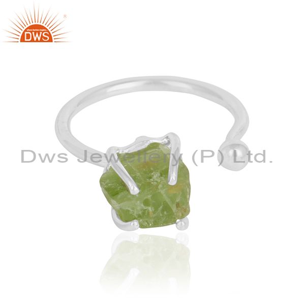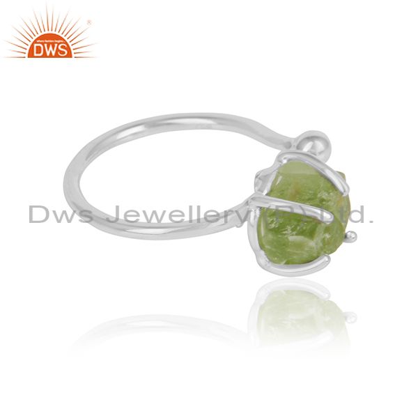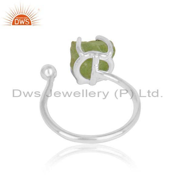 Rough Peridot Gemstone Womens 925 Sterling Silver Designer Rings
