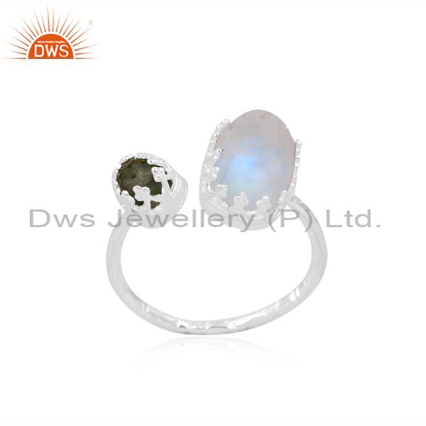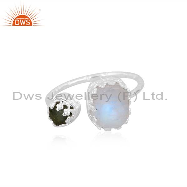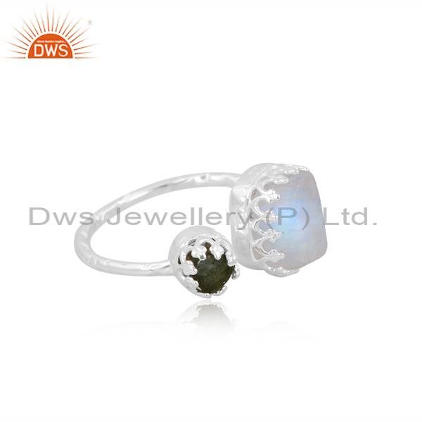 Rough Rainbow Moonstone And Multi Tourmaline Ring