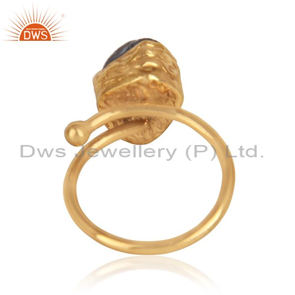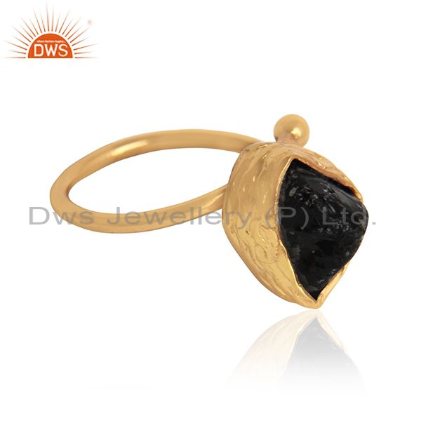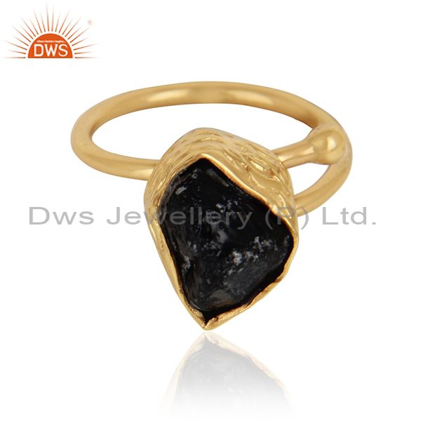 Rough Smoky Quartz Gemstone Handmade Gold Plated Brass Rings