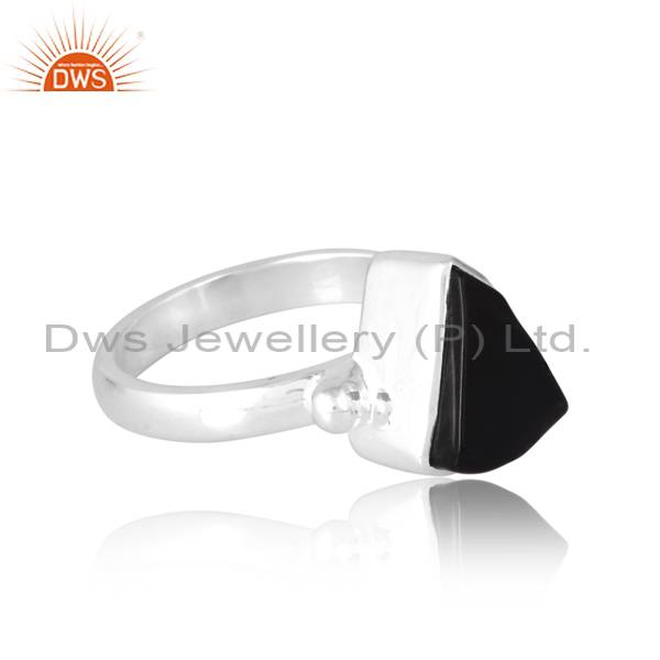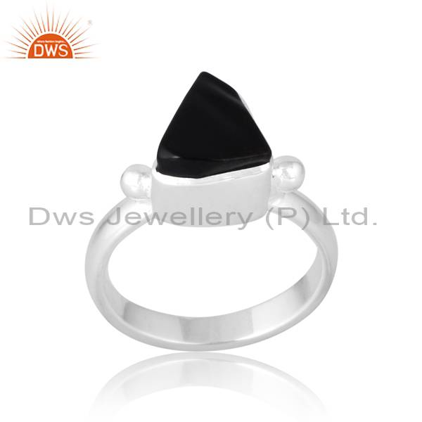 Rough Unshaped Black Obsidian Sterling Silver White Ring