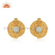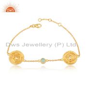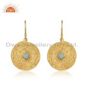 Round 18k Gold Plated 925 Silver Handmade Aqua Chalcedony Rings