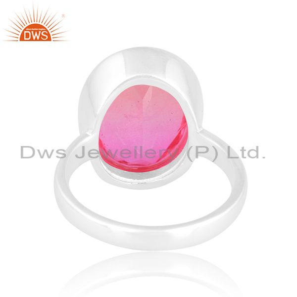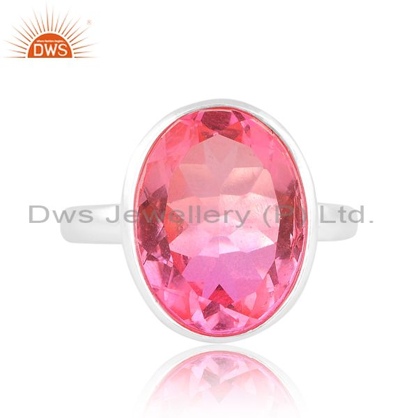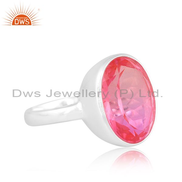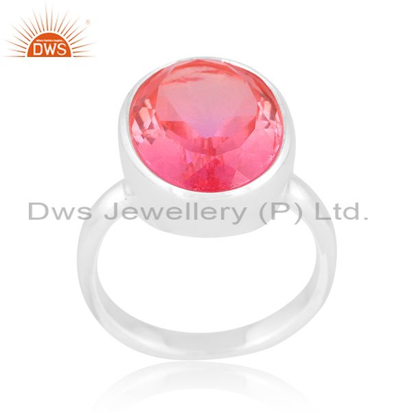 Round Bio Pink Doublet Quartz Set Fine Sterling Silver Ring