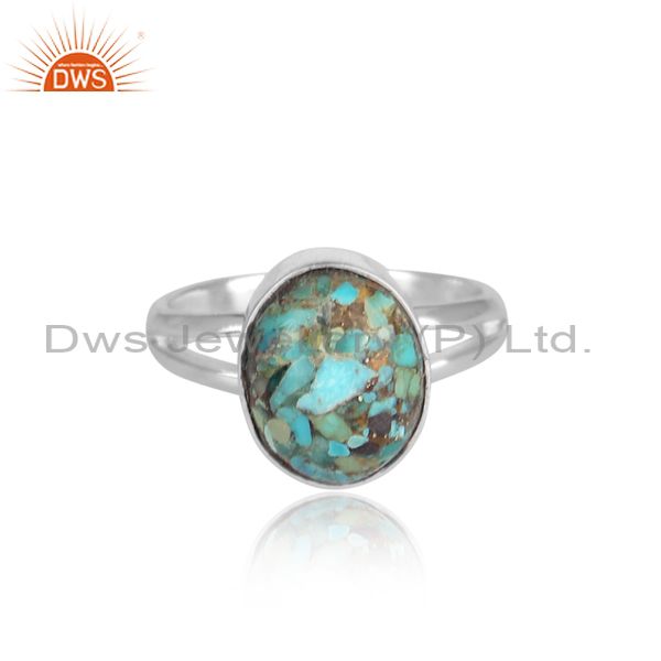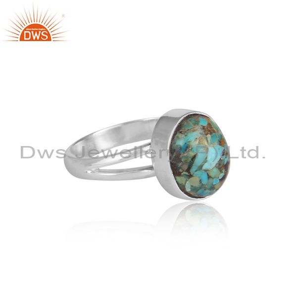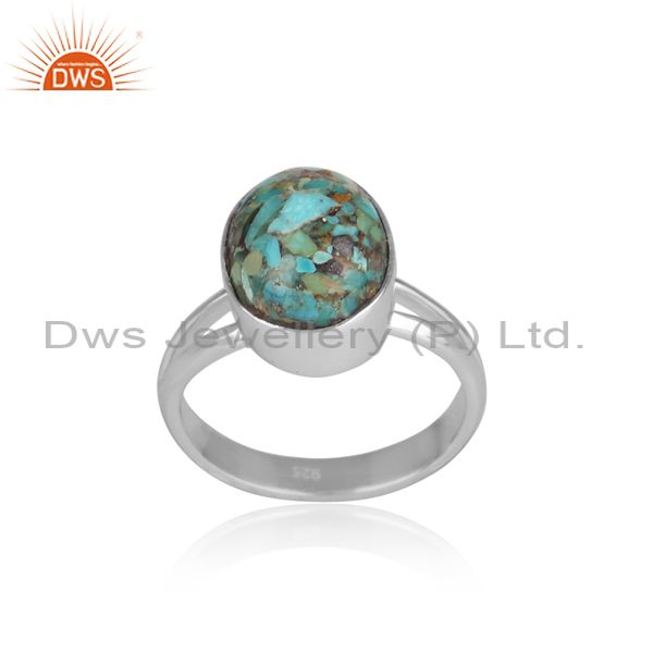 Round Boulder Turquoise Set Fine 925 Silver Designer Ring