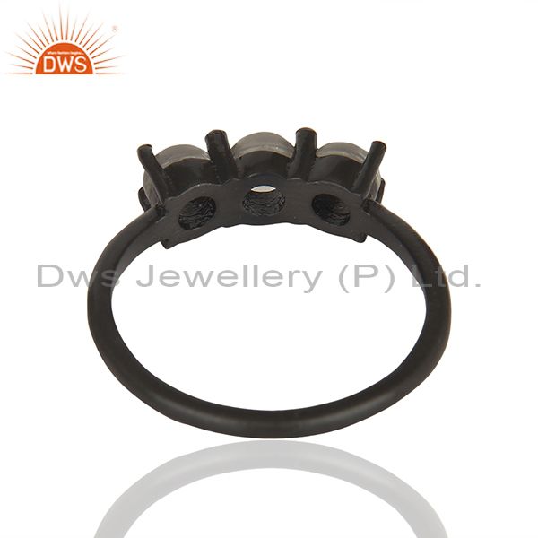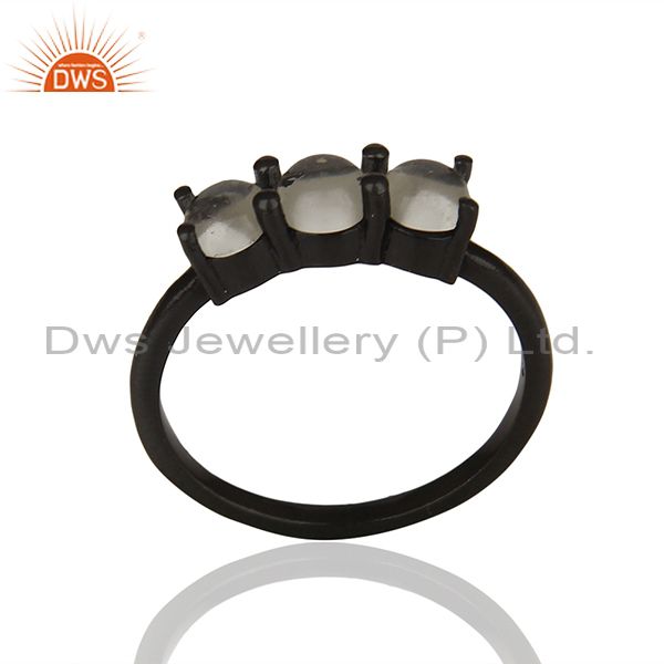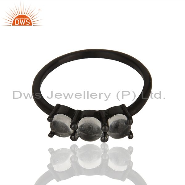 Round Crystal Quartz Gemstone 925 Silver Three Stone Rings Jewelry