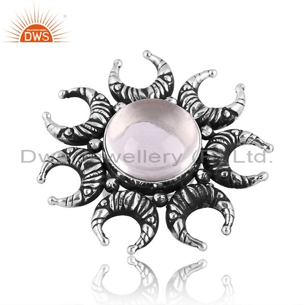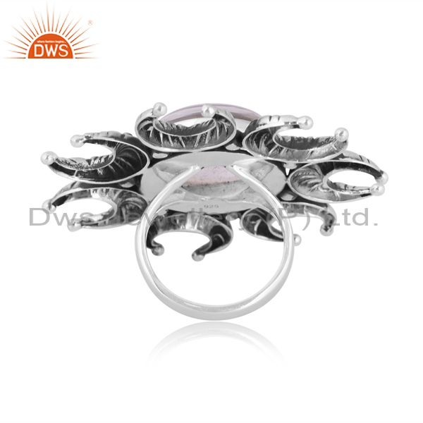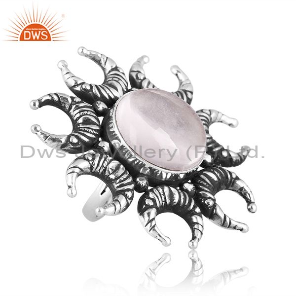Round Crystal Quartz On Sterling Silver Oxidized Ring