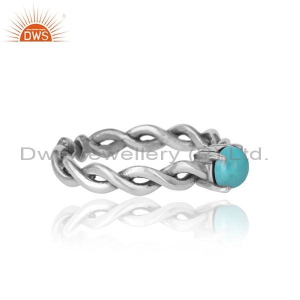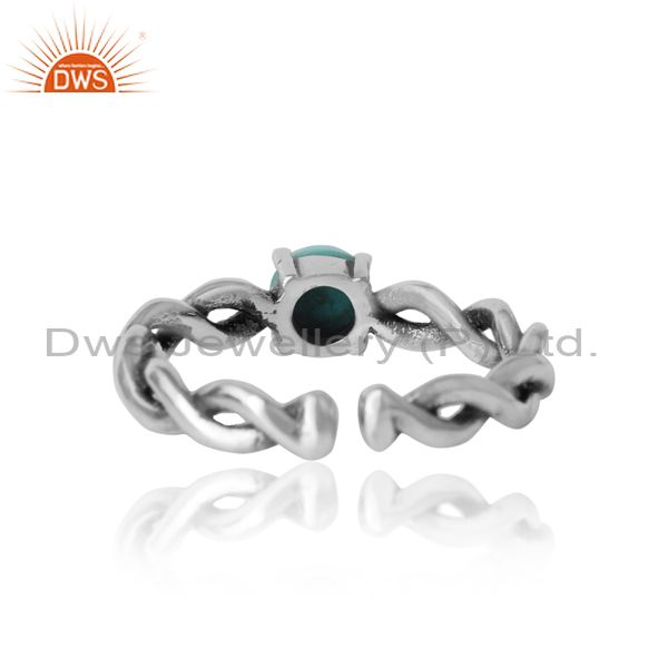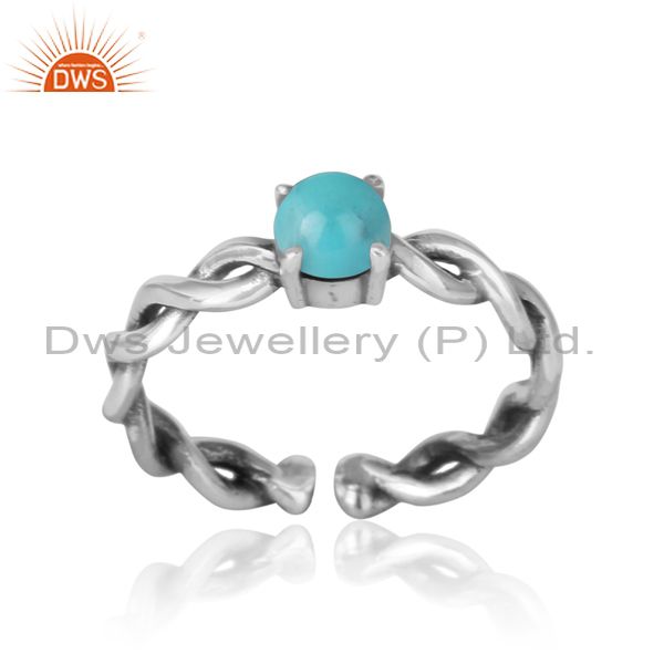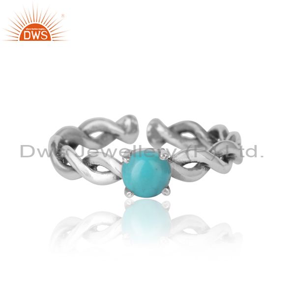 Round Cut Arizona Turquoise Set Oxidized 925 Silver Ring