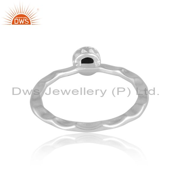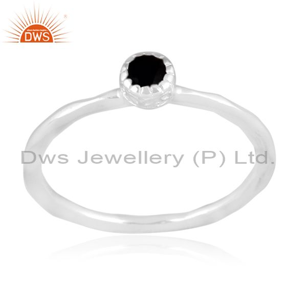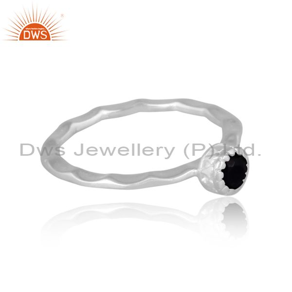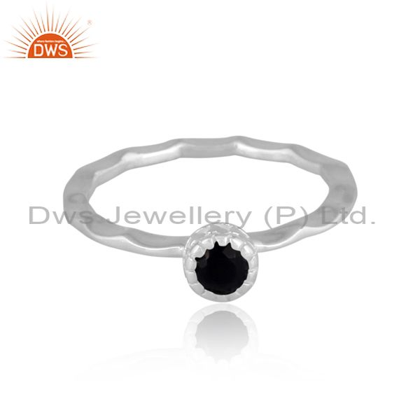 Round Cut Black Onyx Set Fine 925 Silver Handhammered Ring
