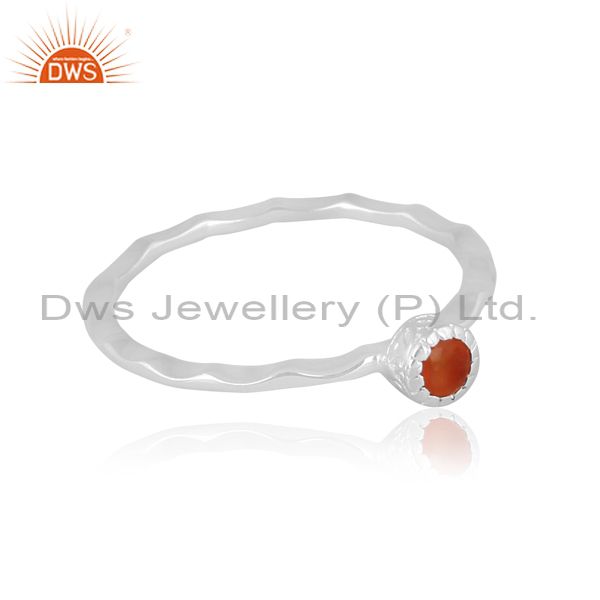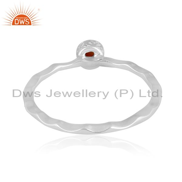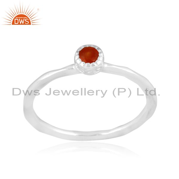 Round Cut Carnelian Set Fine 925 Silver Handhammered Ring