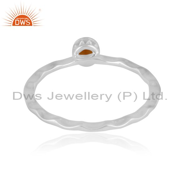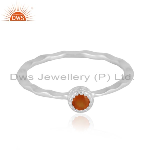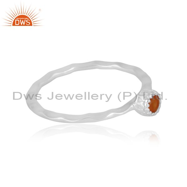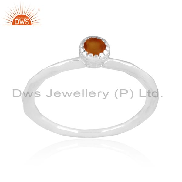 Round Cut Carnelian Set Fine Silver Handhammered Ring
