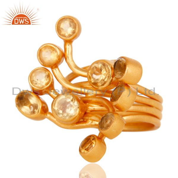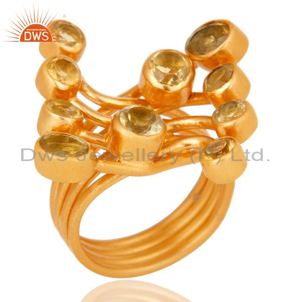 Round Cut Citrine Gemstone Ring Made In 18K Gold Over Sterling Silver